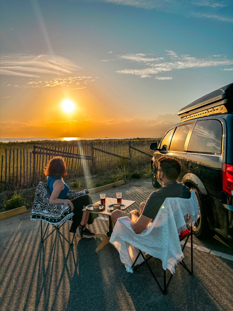 Un autre point que j’ai adoré : la cuisine. Pouvoir se faire à manger où et quand on veut change vraiment le voyage. Moins de restaurants, plus de liberté, et souvent plus sain. Je pense encore à ce café préparé face à la mer, sur un parking à Cape Cod …